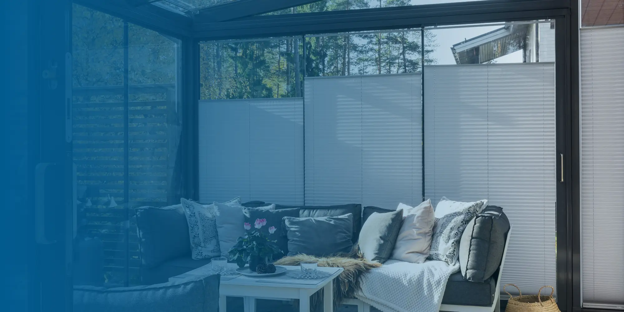 Dla większego komfortu oferujemy plisy Visor, które chronią przed słońcem, zmniejszają nagrzewanie balkonu i zapewniają większą prywatność. Są estetyczne i idealnie komponują się z systemami szklanymi Lumon.