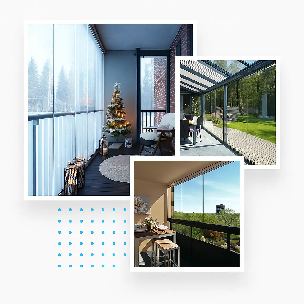 Nasze bezramowe zabudowy szklane pozwalają cieszyć się balkonem przez cały rok, chroniąc go przed wiatrem, deszczem i hałasem. Dzięki innowacyjnemu systemowi przeszkleń można swobodnie otwierać i zamykać balkon, zachowując pełną widoczność i estetykę.
